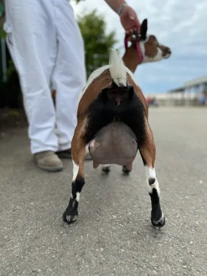 Jupiter is a very Dairy and productive little doe, she has a wide rump, good angulation, brisket extension as well as good general appearance. She is a daughter of Moon and easily earned her AR star as FF, she is a 6*M milker. In fact, she just didn’t want to dry off! he is like a fine wine and is getting better with age.